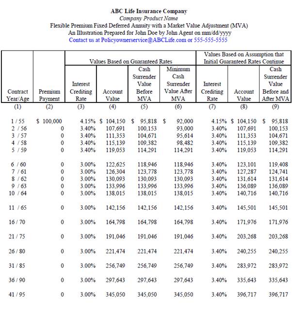 display or schedule of numerical values, both guaranteed and nonguaranteed for